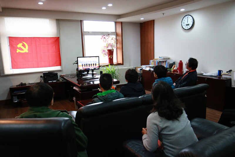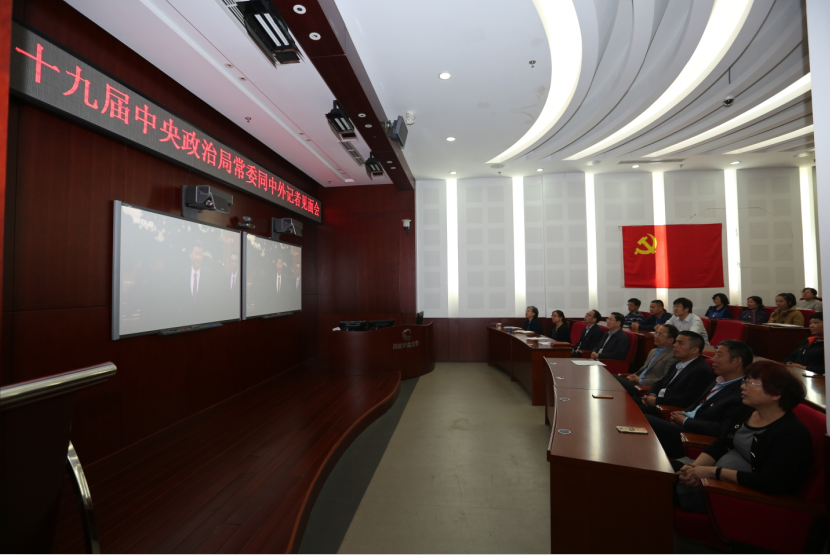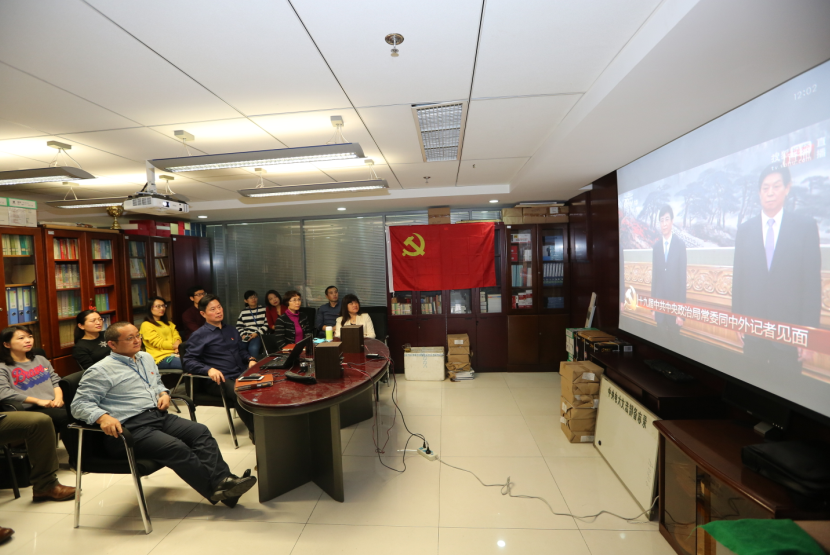 10月25日中午,球王会官网24个在职党支部300余名党员、入党积极分子和部分群众,以党支部为单位,分别在五棵松、魏公村、复兴门3个校区的20个集中收看点,收看了十九届中央政治局常委同中外记者见面会。学校领导班子与党委办公室联合党支部、校长办公室党支部、纪检监察与审计处联合党支部、人事处联合党支部一同收看了见面会,认真聆听了习近平总书记在见面会上的讲话。