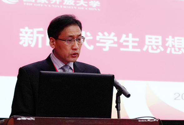 张文斌发表讲话。他指出,在全国教育系统深入贯彻落实全国教育大会、全国高校思想政治工作会议精神这样一个新形势下,球王会官网专门组织研讨新时代学生思想政治工作这一重要课题,意义重大,影响深远。他从“一个目标引领”“一个体系贯通”“一项改革驱动”“一种方法推进”4个方面,阐述了高校学生思想政治教育工作的目标、体系、方法以及改革的思考,既有对党中央、教育部党组关于思想政治教育工作精神的传递和解读,更有鲜活的学生思想教育工作的案例。他强调,开放大学作为我国高等教育的重要组成部分,在很多方面与普通高校学生思想政治工作相类似,都是培养中国特色社会主义的建设者和接班人。他表示,下一步要把球王会官网380多万大学生纳入到整个大学生思想政治工作体系当中来,纳入到整个高校思想工作当中来。