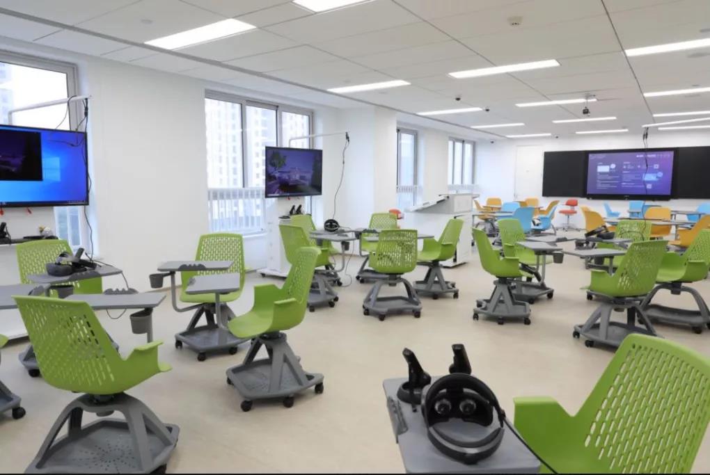 充满视觉冲击力的巨幅纳米黑板、5G+4K远程互动、翻转课堂、全息异地同屏互动、虚拟演播室……这一切并不是电影中的场景,而是球王会官网魏公村校区呈现出的真实校园。在5G智慧教室,加持5G网络、AI、大数据等技术,搭载先进的智慧教室系统以及高科技的配套硬件设施,让学生足不出户就可以享受到学校的优质教学资源,摆脱时空限制实现异地无感知的教学。5G全息教室结合5G、网络通信设备、全息投影技术,辅以灯光、声音,将教师授课真实场景与多样化虚拟背景合成,将全息影像实时展示、无损传输并全息呈现在异地,实现师生间的全息异地同屏互动。虚拟演播室将制作的虚拟三维场景与摄像机现场拍摄的人物活动图像进行数字化的实时合成,使人物与虚拟背景同步变化、实时融合,满足学校精品课程制作、节目录制、直播发布等需求。