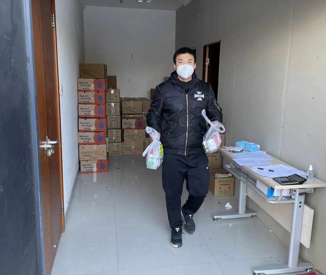 19日上午,他一边发放橙子,一边为30名教职工闪送药品。一个上午,不停地往返于一层库房、校南门、校东门之间,转眼间就走了9099步,外面寒风凛冽,他却早已是满头的汗水。晚上,又得知有4名教职工急需用药,梅楠同志亲自把药品送到教职工家中,还给1名退休教职工快递了口罩和药品。面对教职工的感谢,他只是笑着说,“没事,就当排汗解毒了。”