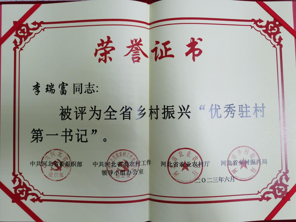 李瑞富同志获评河北省乡村振兴“优秀驻村第一书记”