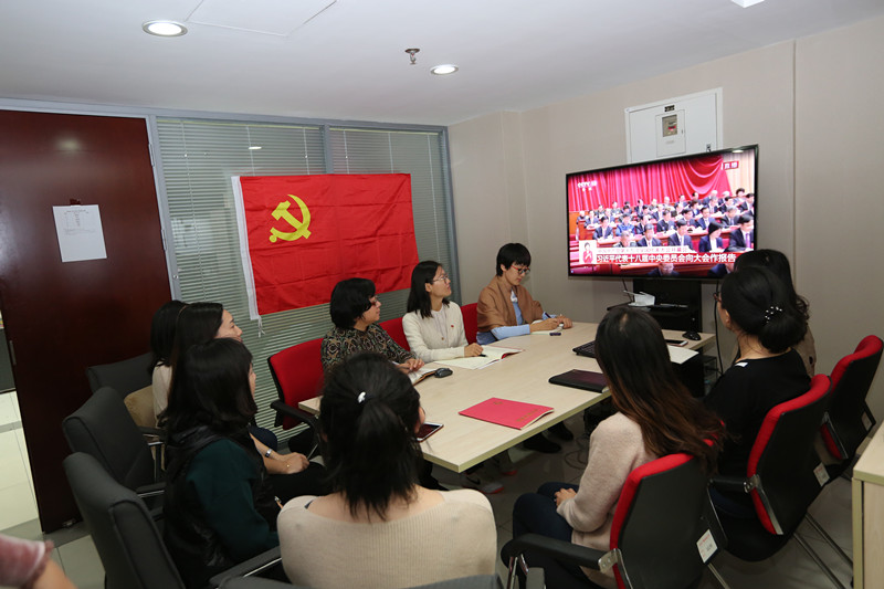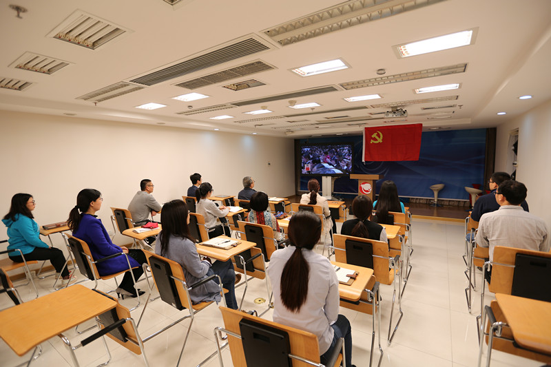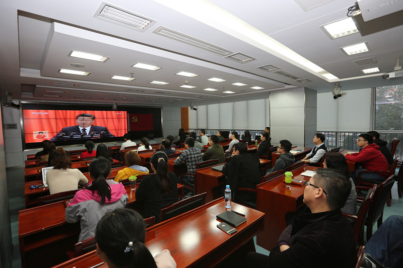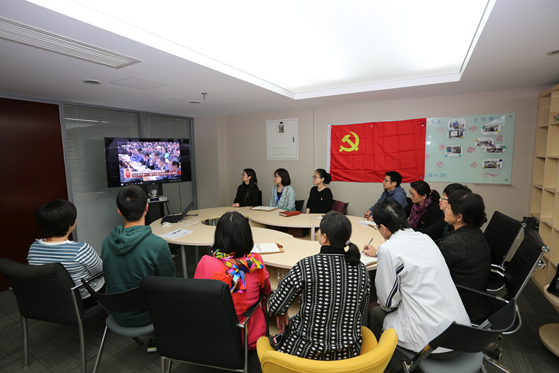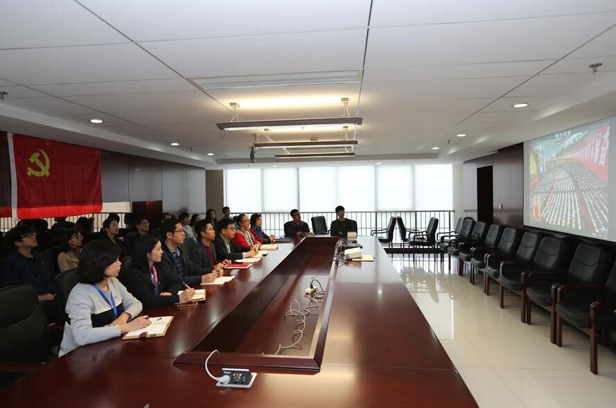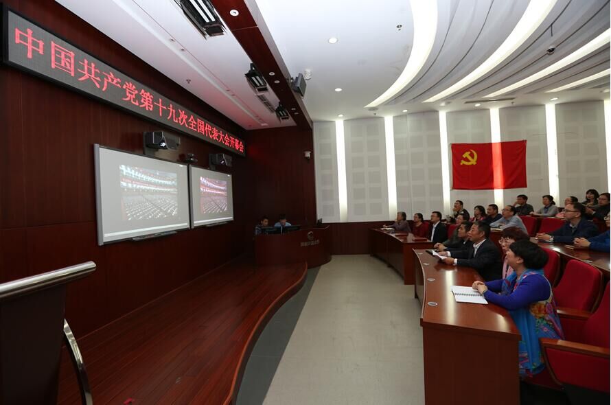 10月18日上午,球王会官网24个在职党支部300余名党员、入党积极分子和部分群众,以党支部为单位,分别在五棵松、魏公村、复兴门3个校区的20个集中收看点,收看了党的十九大开幕会。学校领导班子和党委办公室联合党支部、校长办公室党支部、纪检监察与审计处联合党支部、人事处联合党支部一同收看了开幕会,聆听了习近平总书记代表十八届中央委员会向大会作的报告。党员们胸前佩戴着党徽,怀着激动和喜悦的心情认真收看开幕会。会场悬挂着党旗,现场气氛热烈而庄重。