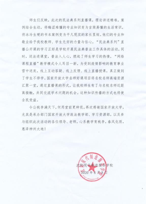 民法典系列公开课除了通过“荟学习”“国开云教室”进行直播,还得到了凤凰网财经、听听FM、百度云智学院和抖音等媒体或平台的大力支持,全网6个传播渠道总收看人数181万,其中单场最高收看人数突破25万,受到人民网、黑龙江日报等媒体的关注报道。体系各分部、学院积极组织师生观看学习,不少分部、学院发来感谢信,表示民法典系列公开课汇聚名师名家,送法入课堂,普法入人心,为受到疫情影响的普法与教学工作带来“及时雨”。