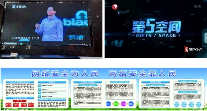 宣传周期间,学校积极开展宣传活动。五棵松校区一楼大厅大屏幕滚动播放网络安全宣传视频“第五空间”,该片是在中央网信办网络安全协调局、上海市网信办的联合指导下,由上海广播电视台融媒体中心制作,宣传片从个人、社会、国家三个维度,呈现了一份震撼的网络安全调查报告。同时,学校制作了网络安全宣传展板,在人流密集区域进行张贴,展示《网络安全法》这一基础性法律的专家解读。