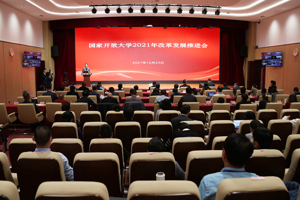 12月23日,球王会官网2021年改革发展推进会在北京召开。会议的主要任务是:认真学习贯彻党的十九届五中、六中全会精神,系统谋划开放大学“十四五”改革发展工作,研究部署2022年重点工作,加快推进中国特色世界一流开放大学建设,实现高质量发展。