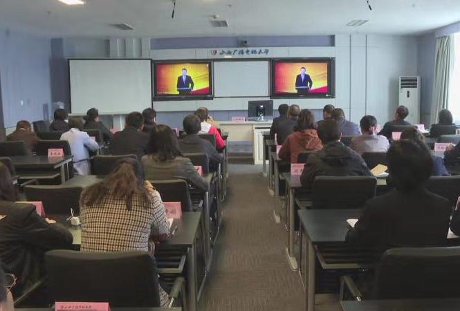 为落实中共中央办公厅、国务院办公厅印发的《关于深化新时代学校思想政治理论课改革创新的若干意见》中要求高校党委书记、校长每学期带头讲授思政课的文件精神,2019年10月18日上午,球王会官网党委书记、校长荆德刚开讲形势与政策课程第一课——中国经济行稳致远。本次课程讲授实现了同步直播的技术创新。山东分部、山西分部、浙江分部、四川分部、长春分部、宁波分部以及南海实验学院等组织师生收看了同步直播。