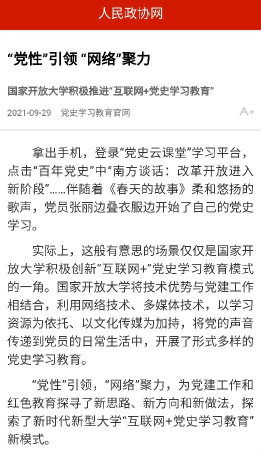 【人民政协网】“党性”引领 “网络”聚力——球王会官网积极推进“互联网+党史学习教育”