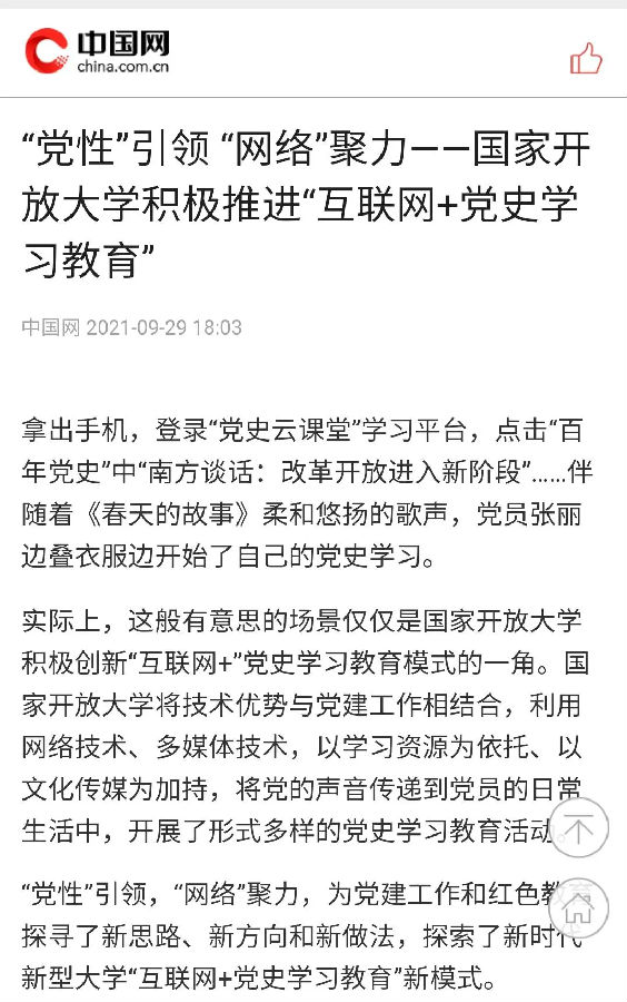 【中国网】“党性”引领 “网络”聚力——球王会官网积极推进“互联网+党史学习教育”