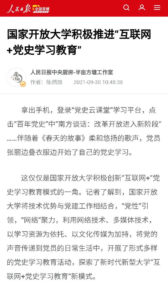 【人民日报中央厨房—半亩方塘工作室 】球王会官网积极推进互联网+党史学习教育