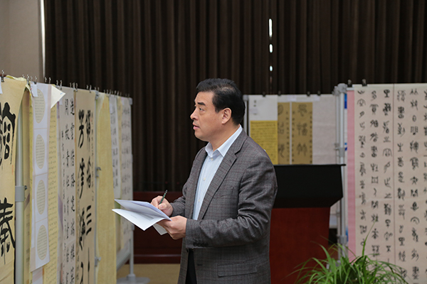 10月29日,大赛组委会邀请书画界知名专家及办学体系书画家对网络初评选出的作品进行会评。球王会官网党委书记、校长杨志坚,党委副书记刘臣与评审专家共同挥毫泼墨,感悟中国传统文化。杨志坚强调,2018年是邓小平批示创办广播电视大学40周年,40年来,与国家改革开放同步,全国广播电视大学系统为全民素质提升做出了重大贡献,也逐步形成了具有鲜明特色的开放大学文化。从全国教职工的书画作品中,我们既看到了电大系统优秀文化的传承,又感受到了开放大学办学体系在新时代新征程的担当和信心。
