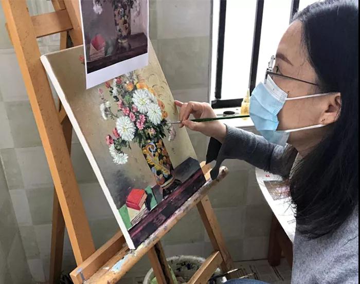 在抗击疫情期间,教学团队了发布《致油画班全体同学的倡议书》,号召大家遵守疫情防控各项制度规定,传播正能量、汇聚精气神,鼓励大家拿起画笔和调色板,调节心理,丰富业余生活。还设计了一些更适合大家这段非常时期学习的作业。经统计,1月20日以来,各班级微信群里学员互动发言数合计2200余条。学员们身处全国各地,面对严峻的疫情形势,线上微信群充满正能量,学习成员之间互相鼓励,用手中的画笔描绘了一幅幅美丽画面,展现了学员们团结一心、众志成城,排除万难,赢得疫情防控阻击战最终胜利的信心。