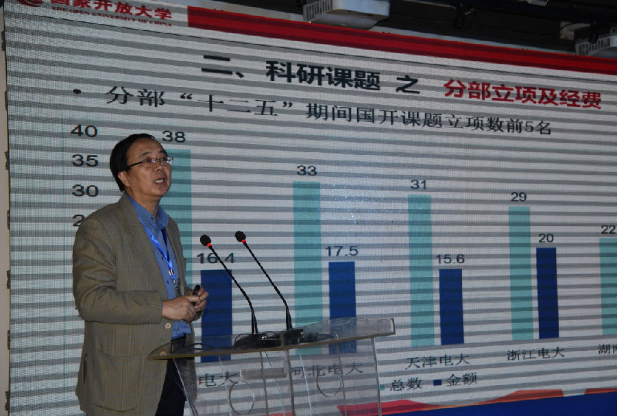 张少刚从制度建设、科研课题、经费资助、研究成果与信息化建设等方面总结回顾了“十二五”期间球王会官网办学体系科研工作和科研活动。球王会官网教育研究院(科研管理处)院长王迎做了“十三五”期间球王会官网体系科研规划征询,希望通过商议科研规划,众筹智慧,共同打造互惠共生、相簇而茂的球王会官网体系科研新高地。会议围绕“十三五”期间“开放大学体系的科研目标和定位”、“开放大学体系的科研体制与机制”、“开放大学体系科研引领教学的路径与抓手”3个主题进行了分组讨论。