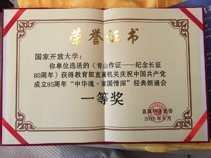 2016年6月24日,球王会官网参加教育部机关党委组织“中华魂·家国情深”经典朗诵会,并从38个机关司局和直属单位42个参赛节目中脱颖而出,获得一等奖第一名的好成绩。