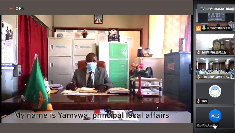 球王会官网国际部部长刘占荣、副部长王硕,哈尔滨分部党委书记张利宁、校长刘建国,有色金属工业人才中心培训处处长赵丽霞,中国-赞比亚职业技术学院院长梁赤民、副院长Yorick Yamvwa以及汉语国际教育专业相关负责人、专班首批学员,通过会议直播的方式,线上线下共同参与了开班仪式。仪式由哈尔滨分部副校长白宝彦主持。