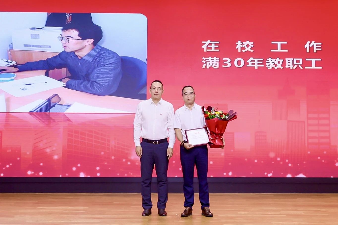 党委委员、副校长范贤睿宣读“关于对在校工作及从事教育工作满三十年教职工进行表彰的决定”
