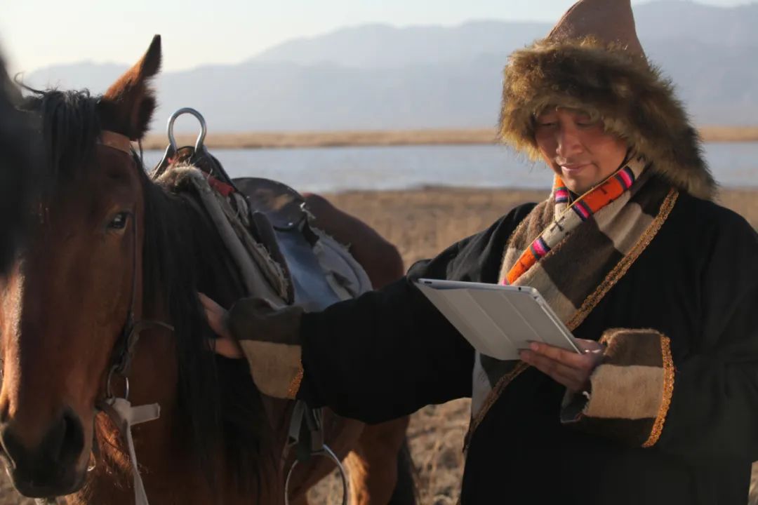 教育信息化促进教育公平,球王会官网将教育送到边疆,图为内蒙古牧民边放牧边利用信息化手段接受远程教育。