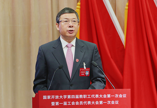 党委书记、校长荆德刚做学校工作报告。报告指出,近五年来,在习近平新时代中国特色社会主义思想指引下,在教育部党组领导下,全校上下认真贯彻落实党的十八大、十九大和全国教育大会精神,解放思想、改革创新,在人才培养模式、办学治校、教育信息化、非学历教育、学分银行、国际化、党建与思想政治建设等方面取得的重大进展,学校办学规模持续增长,内涵建设不断加强,毕业生社会满意度进一步提升,学校社会声誉进一步提高,教职工工作生活待遇不断改善。