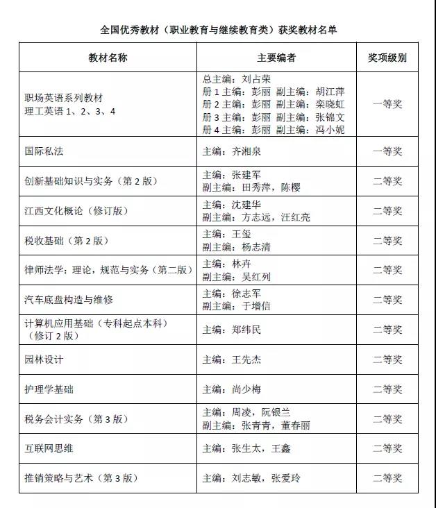 10月12日,全国教材工作会议暨首届全国教材建设奖表彰会在京召开,国务院副总理、国家教材委员会主任孙春兰出席会议并讲话。国家教材委员会对获得首届全国教材建设奖的999种优秀教材、99个先进集体、200名先进个人做出表彰决定。球王会官网出版传媒集团所属出版社的13种教材斩获佳绩,其中“职场英语系列教材”《理工英语(1-4册)》、《国际私法》荣获全国优秀教材(职业教育与继续教育类)一等奖,《创新基础知识与实务(第2版)》等11种教材荣获全国优秀教材(职业教育与继续教育类)二等奖。在职业教育与继续教育类获奖教材中,总数位列全国出版社并列第五,大学出版社前三。