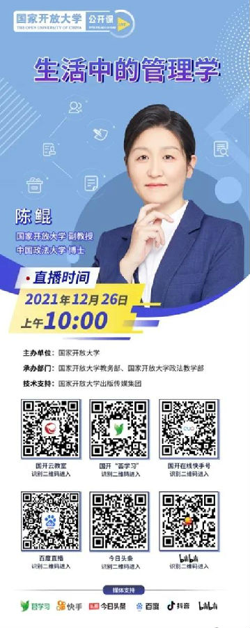 2022年伊始,球王会官网教务部和各学部已经启动春季学期直播公开课相关筹备工作,内容以学科理论前沿、发展动态、热点问题分析等专题讲座为主,优选部分直播公开课进行统筹策划、升级制作及多平台推流直播服务,面向社会进行宣传推广。