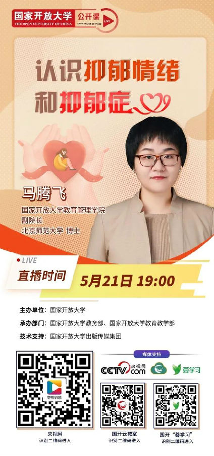 马腾飞老师带大家认识抑郁情绪和抑郁症,了解两者有什么不同,并且带来一些很实用的建议,指导大家如何应对抑郁情绪和抑郁症。