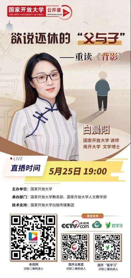 “父与子”是古今中外文学作品中常见的主题。在轰轰烈烈的五四新文学运动中,朱自清的《背影》是少数正面展现父子关系的作品。白晨阳老师为读者理解这部经典作品提供了全新的视角。通过介绍朱自清和父亲之间真实的父子关系,分析出 《背影》背后隐藏的更为真实、复杂、深刻的亲情主题;《背影》不仅是一部“父子情深”的文本,同时也是一部讲述“父子和解”的文本。