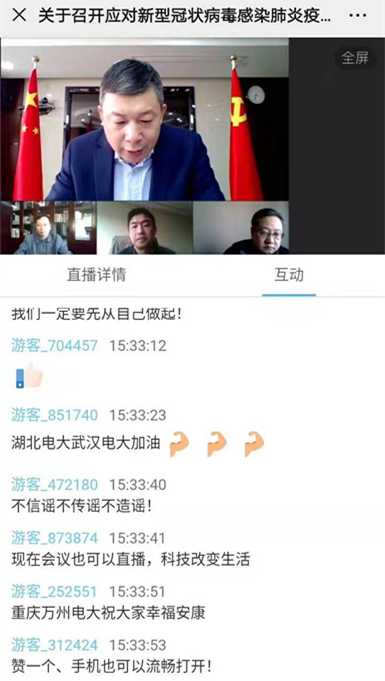 武汉分部校长刘前信介绍了学校疫情防控工作。目前武汉分部共有两名教师感染新型肺炎,两位教师病情平稳,学生中没有出现感染情况。学校接下来将重点做好疫情防控以及开学准备工作。