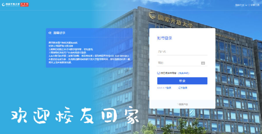 2020年10月,球王会官网数字图书馆面向1512万毕业生开通校友服务系统,提供数字图书馆资源和服务。国开校友只需在国开数字图书馆页面(library.ouchn.edu.cn)选择“校友服务”,经身份证认证后,即可随时随地使用国开数字图书馆的资源和服务。这是继2012年开放大学数字图书馆面向全国近400万开放大学师生正式提供服务以来,服务规模的又一次大幅提升。