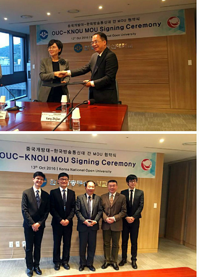 研讨会结束后,杨志坚代表球王会官网与韩国国立开放大学代校长金美淑教授(Prof. Kim Oi-Sook)签署了两校合作备忘录。根据该备忘录,双方将在人员交流、合作研究等领域开展广泛合作。