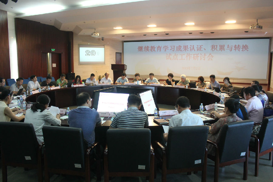 教育部职成司远程与继续教育处处长刘英、中国成人教育协会常务副会长刘志鹏、中国成人教育协会副会长汪春慧、全国高校现代远程教育协作组常务副秘书长李德芳,北京开放大学、上海开放大学、江苏开放大学、广东开放大学、云南开放大学分管校领导及相关部门负责人,以及球王会官网学分银行及有关部门负责人参加试点工作研讨。