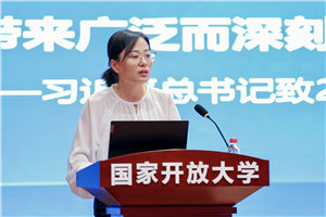 范贤睿以《同心共谋数字化大学建设》为题,以习近平总书记关于教育强国的重要论述为主线,聚焦现实背景、阶段成果、关键问题、路径选择四个方面,对学校改革发展总体情况和数字化大学建设情况进行了系统介绍,描绘了建设一所链接世界的数字化大学的美好蓝图。她强调,新时代新征程呼唤新担当新作为,数字化是推动开放大学高质量发展关键的“驱动轮”和“催化剂”,作为一名国开青年,要持续增强数字化思维,提升数字化能力,在以数字化为引领撬动开放教育整体变革的国开数字化战略行动中贡献青春和力量。