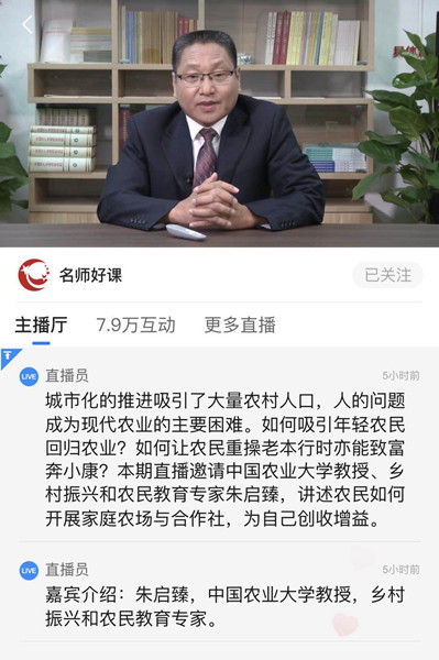 在宣传推广方面,既保证国开体系内学生通过数图公众号与荟学习平台及时收看,同时积极拓展与快手、腾讯新闻、听听FM、凤凰网财经等互联网平台和知名媒体的合作,将课程内容广泛且迅速推送给社会公众。特别是首次尝试与北京电视台生活频道联合推广,在直播课开讲前,以“丰收不忘柴米贵”为主题,在其宣传平台上预先征集了102个关于丰收和剩菜剩饭改造的短视频,6317万人参与活动,为直播有效造势。