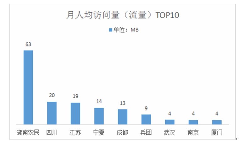 图4显示的是4月9日至5月9日月人均流量排名情况,可以看到湖南农民大学生项目的人均流量依然遥遥领先,同时我们也看到宁夏、武汉等分部实现了人均请求数和流量的双增长。