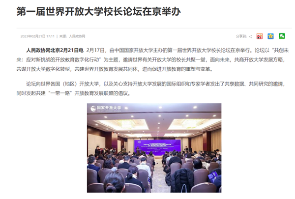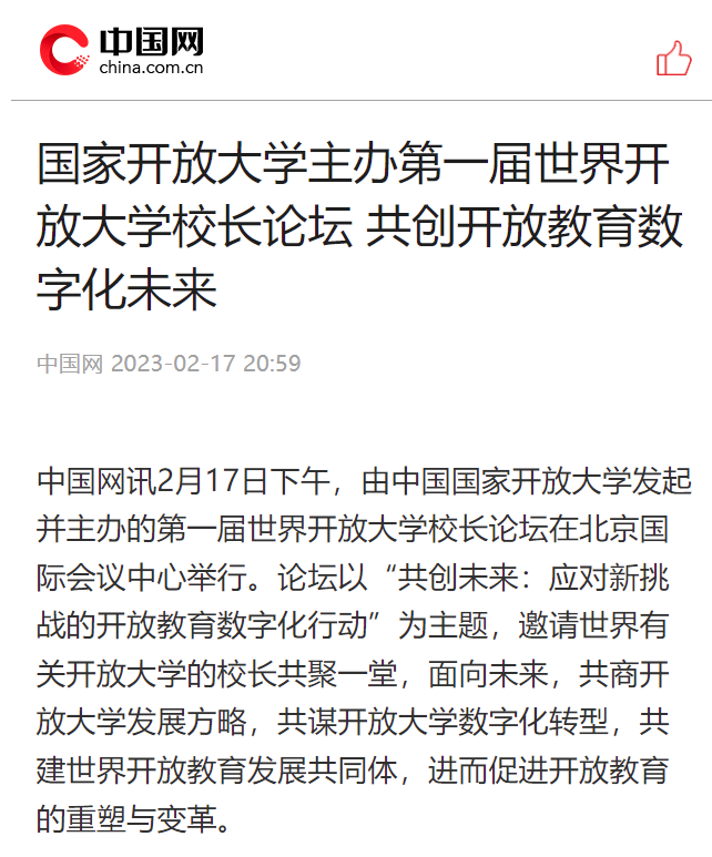 【中国网】球王会官网主办第一届世界开放大学校长论坛 共创开放教育数字化未来