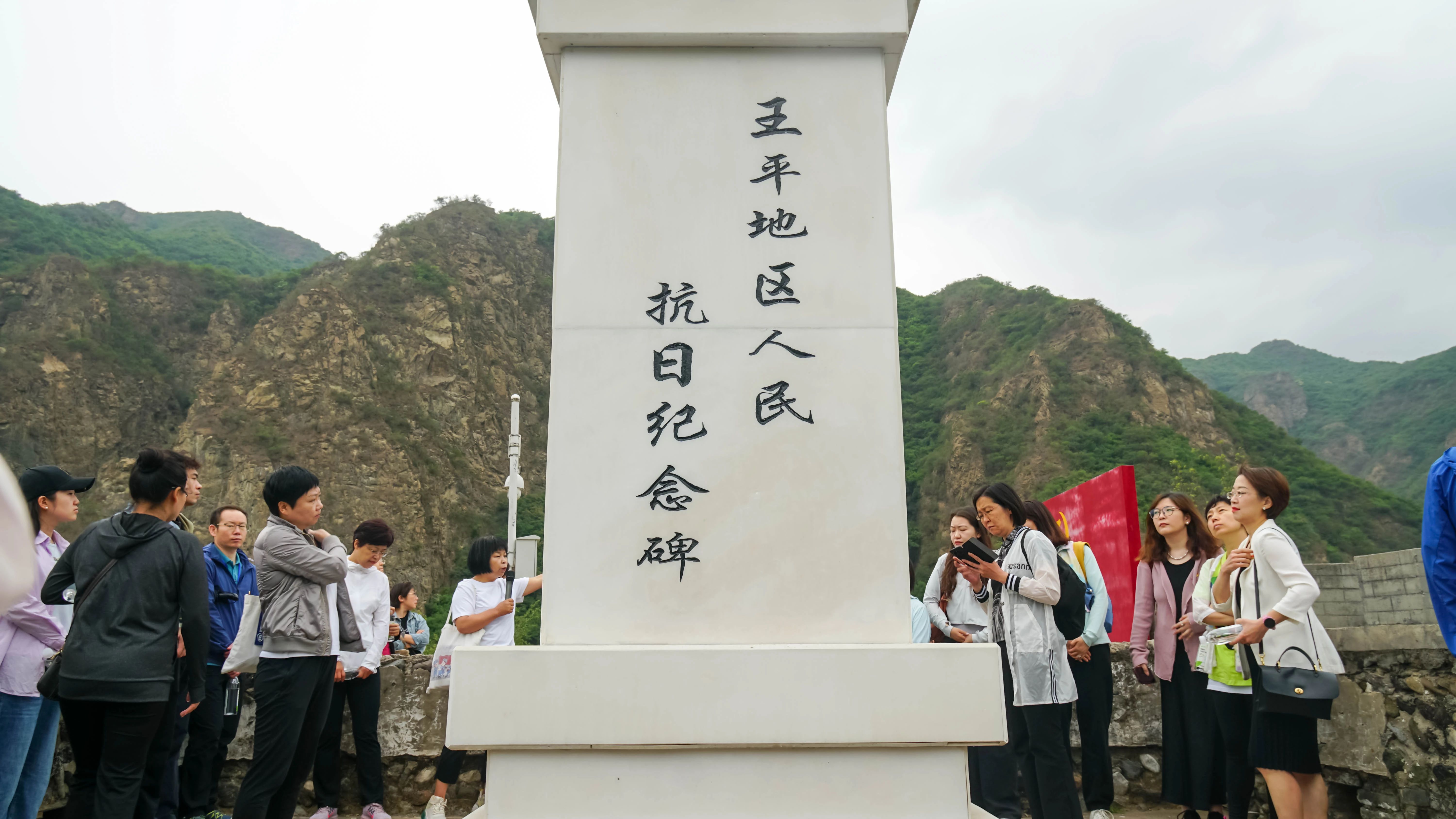 王平地区抗战纪念碑,庄严肃穆。党员干部伫立在纪念碑前,认真倾听王平地区(安家庄)抗战历史和红色王平“四个一”的故事,深切缅怀红色先烈。大家走了一段红色小路,用心聆听安家庄红色抗战历史故事。党员干部还先后前往红色地标千米长廊、永定河畔初战告捷雕塑群、丰沙线原日军隧道遗址(铁路桥洞)、红色文化主街区(大型浮雕群)等景观进行参观学习,并在英雄亭(茶棚)进行互动,沉浸式体验安家庄人民送亲人上前线的场景,体悟浓浓军民鱼水情。