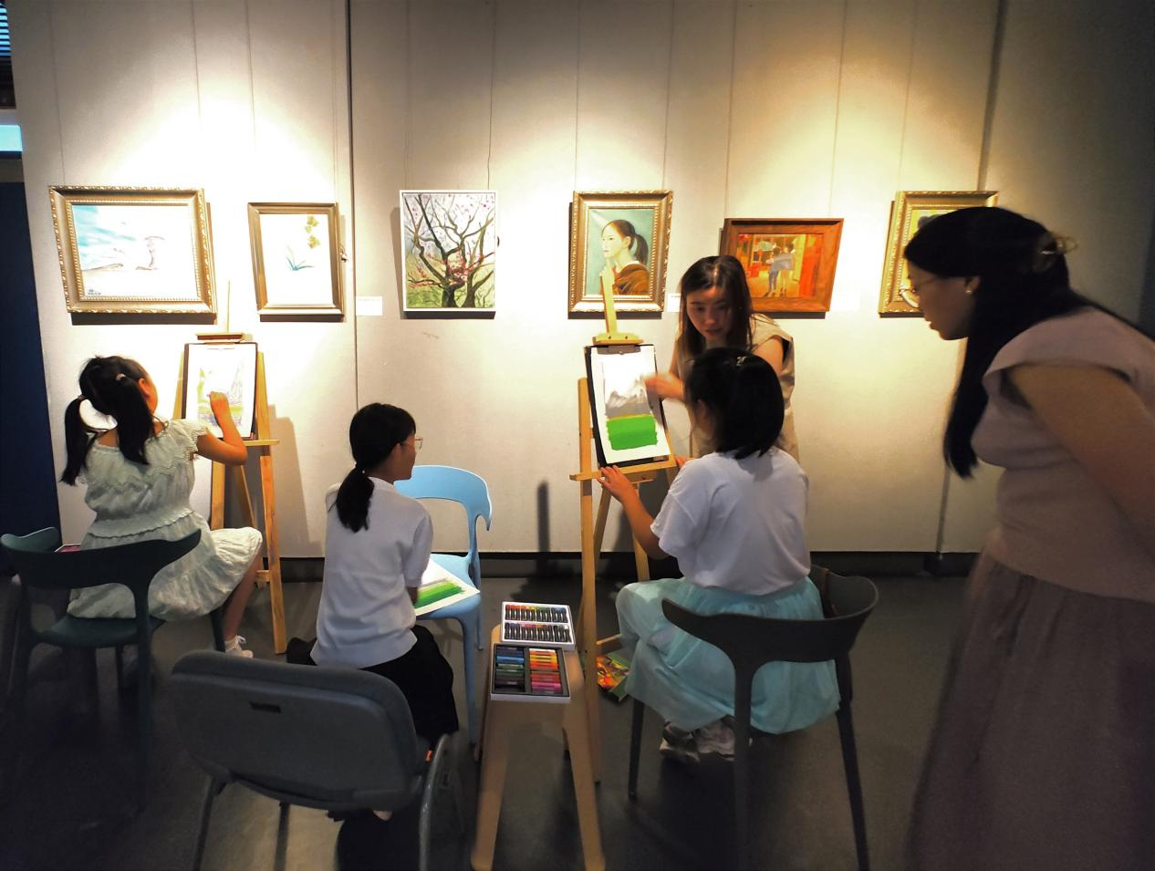 不少前来参观学习的少年儿童还现场临摹各自喜欢的油画作品。