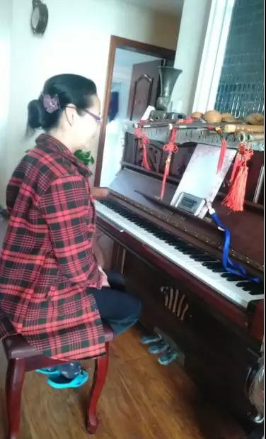 河南社区教育的老年学员在家中通过手机学习钢琴课