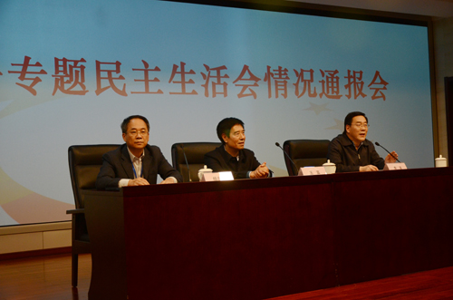 杨志坚从民主生活会前期准备情况、会议召开情况、整改方向和措施、教育部督导四组和鲁昕副部长的点评发言、下一步工作打算五个方面,全面通报了领导班子专题民主生活会情况。他指出,领导班子专题民主生活会贯彻习近平总书记指导河北省委常委班子专题民主生活会的重要讲话精神,聚焦“四风”突出问题,紧密联系思想、工作和作风实际,深入查摆问题,深刻剖析问题产生根源,明确今后努力方向和整改措施。在自我批评的基础上,五位领导班子成员开展坦诚的相互批评,直面问题,开诚布公,既善意指出问题和不足,又诚恳提出改进意见和建议。会议气氛严肃、热烈、认真、和谐,收到了帮助同志、增进团结、促进工作的效果。