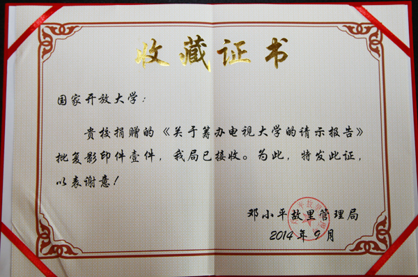 2014年9月22日,邓小平终身教育思想暨广播电视大学转型升级与学习型社会建设研讨会在小平同志故乡四川广安召开。会议召开恰逢邓小平同志诞辰110周年之际,旨在纪念邓小平对教育事业特别是远程开放教育事业做出的巨大贡献,促进广播电视大学转型升级与学习型社会建设。
