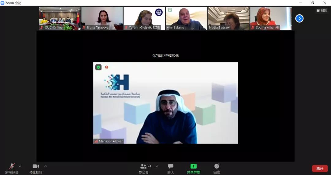 2022年1月10日,由阿拉伯联合酋长国哈姆丹·本·穆罕默德智慧大学(以下简称智慧大学)主办的“在线、开放、智慧和技术增强型高等教育基准框架和数据集联盟”(以下简称基准框架联盟)校长国际会议在线举行。球王会官网副校长范贤睿应邀出席会议。