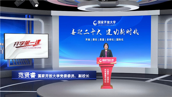 8月29日上午10点,球王会官网党委委员、副校长范贤睿通过视频直播方式向开放大学体系全体学子、教职员工及社会公众主讲题为《喜迎二十大建功新时代》的“开学第一课”,带领大家共同开启2022年秋季学期旅程。