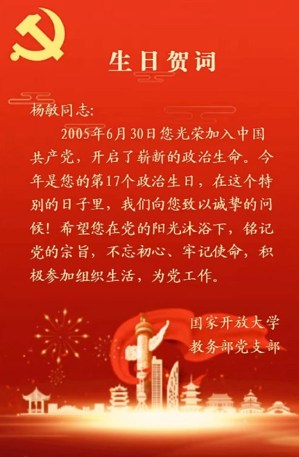 来自三个党支部的同志们共同为每年上半年入党的党员庆祝了“政治生日”,每位“过生日”的党员均收到了一张电子“政治生日贺卡”,既仪式感满满,又环保且利于长久留念。