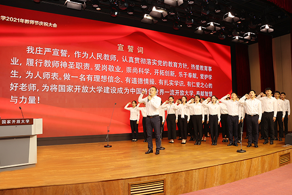 2021年新入职教职工进行了庄严宣誓。在激昂的誓词中,新入职教职工更加坚定了自己作为一名光荣的国开教师的责任和使命。
