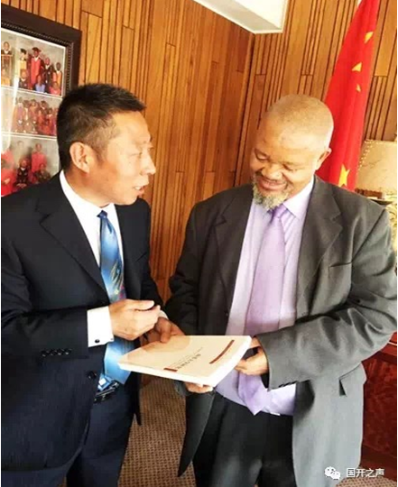 刘臣副校长向南非大学校长、ICDE主席MandlaMakhanya赠书