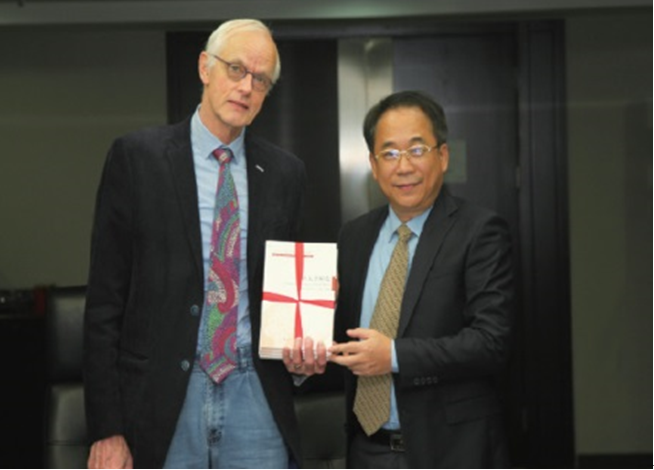 杨志坚校长向荷兰开放大学前任校长Fred Mudler赠书