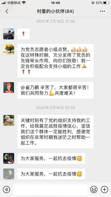 2月18日,考虑到黄村集体宿舍成员多、地域分布广、回京时间不一,疫情防控工作压力大,部分青年党员(李静、崔乃鹏、王毅凡、张子阳、刘鹏波、张源)自发组建“黄村集体宿舍疫情防控党员志愿者小组”,为回京隔离期间生活工作不便的教职工提供买菜、打水等服务,每天协助督促大家做好楼道消毒和体温检测上报工作。