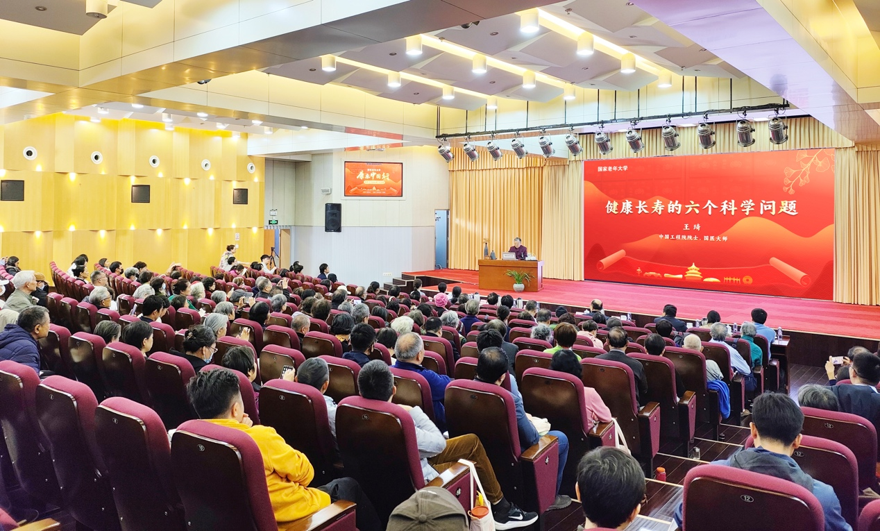 王琦围绕“健康长寿的六个科学问题”作主题讲座。他以深厚的中医学功底为基础,多项科学研究成果和大量实际例证为佐证,讲述了健康长寿与生活目标、适度运动、情志调畅、饮食均衡、地域环境、平和体质等六大科学问题的关系。