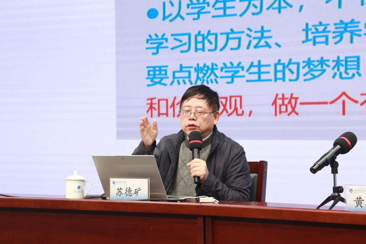 教育部教育家精神巡回讲师团成员、国家课程思政示范课程负责人、国家级课程思政教学名师,浙江大学苏德矿教授为体系文史哲艺相关专业教师做了题为《心中有学生,处处是课堂》的思政专题报告。苏教授以自己的亲身经历,聚焦“懂”“趣”“透”“精”“情”“德”六个维度,深入浅出为老师们厘清了课程思政的逻辑线索,以“爱党、爱国、爱集体、爱父母、爱自己”的“五爱”内核,解构了实现课程思政的判断标准,最终实现立德树人的育人目标。浙江开放大学吴乐珍和王文章分别就浙江开放大学课程思政的教学探索与教课程思政项目的成功实践作经验分享。