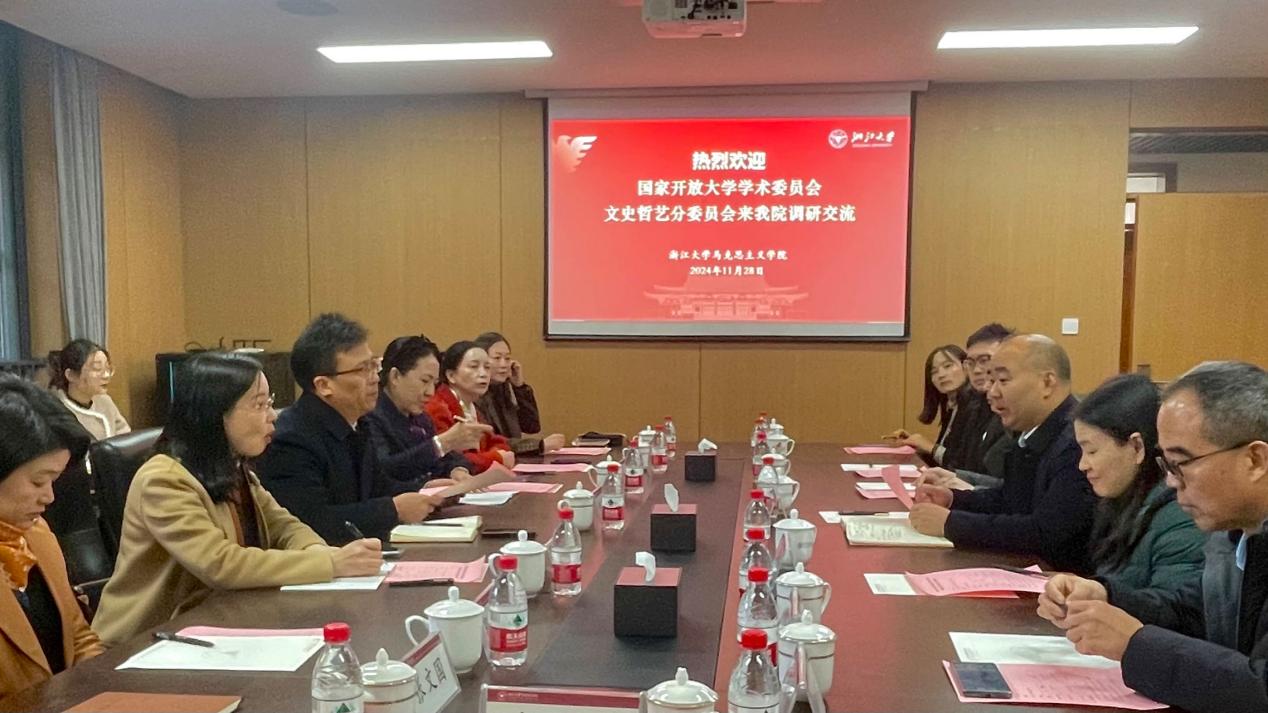 委员们还赴杭州国家版本馆和浙江大学马克思主义学院进行学习调研。马克思主义学院副院长、博士生导师代玉启教授针对调研问题的一一回应,以及对浙江大学书记以“爱、文、史、哲”四词定位课程思政精神内涵表述的解读本身就是一场精彩的思政课。让全体委员对文史哲艺学科教学与课程思政融合有了更深入的理解,对如何将人文精神、价值审美和哲学思维融入课程思政教学有了更清晰的思路。