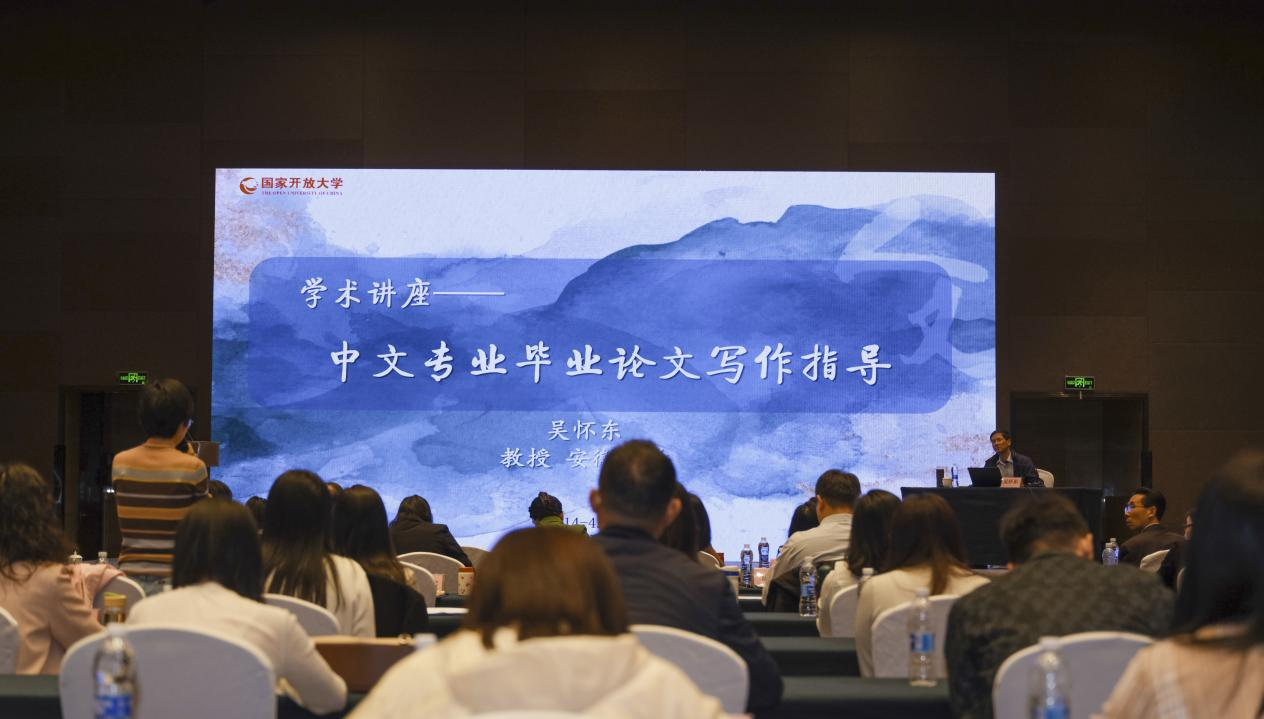 校学位评定委员会文学艺术分委会主席、山西开放大学副校长郭丽云受邀代表学位分委会和文史哲艺分委会致辞。安徽开放大学副校长诸咸斌、滁州开放大学校党委书记张大银在致辞中系统介绍了安徽省域及滁州地域的文化特色与安徽分部系统的办学特色及学位论文工作情况。特邀专家安徽大学文学院教授、博士生导师吴怀东围绕“中文专业毕业论文写作规范”展开专题讲座,深度解析中文学科研究的底层逻辑和终极诉求,并聚焦核心难点,传授本科论文指导教师帮助本科学生寻找合适选题和科研路径的有效方法。
